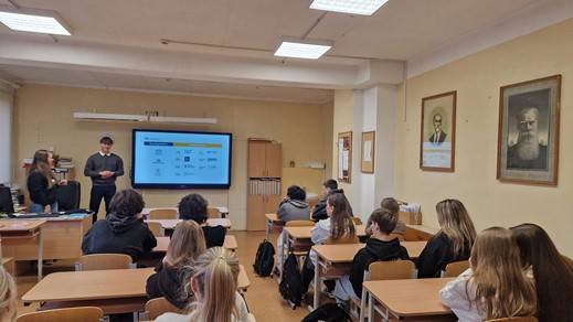 Tāpēc uz skolu bija uzaicināta vēstnese no Ekonomikas un kultūras augstskolas, kura dalījās savā pieredzē, prezentējot augstskolas mācību programmas..