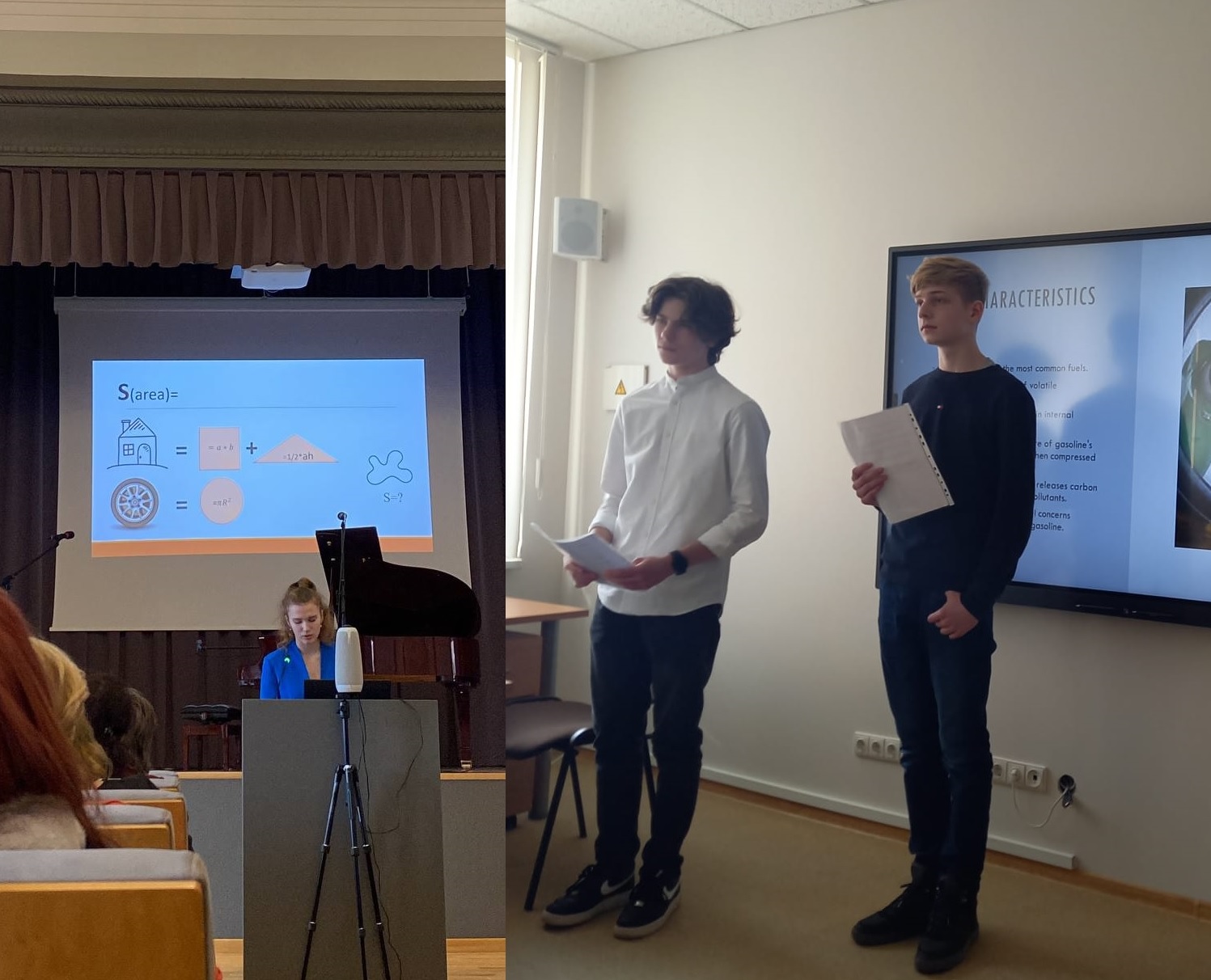 9.e klases skolēni Nikita Aleksandrovs un Ivans Pavligo-Vinogradovs ar darbu "Fuel Comsantions"