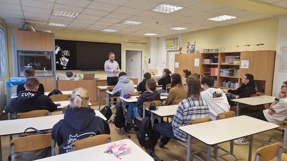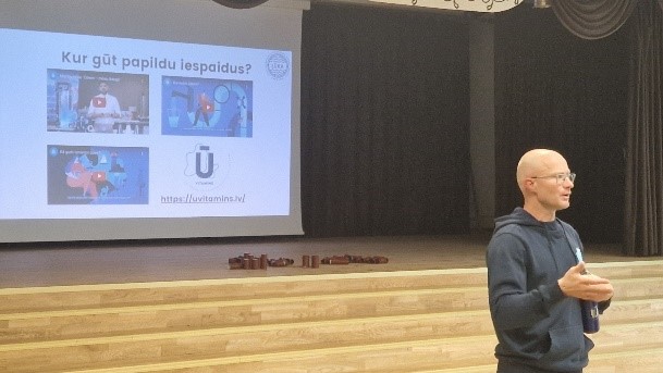 Lektors stāstīja par "Ū" vitamīna kustības vēstnešiem, akūti pieprasītām profesijām; inženieris, operātors, siltumapgādes tehniķis.