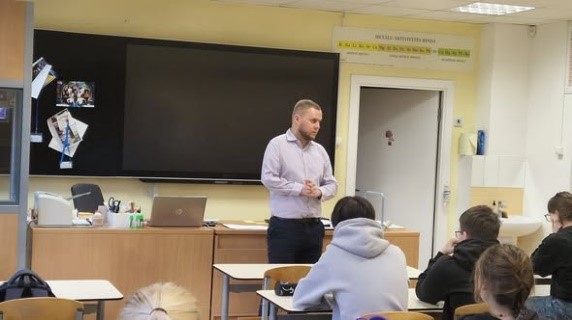 Mūsu bijušais skolēns un kolēģis Mihails Korčevskis atsaucās aicinājumam un piektdien, 5. decembrī, ieradās pie 12.a klases.